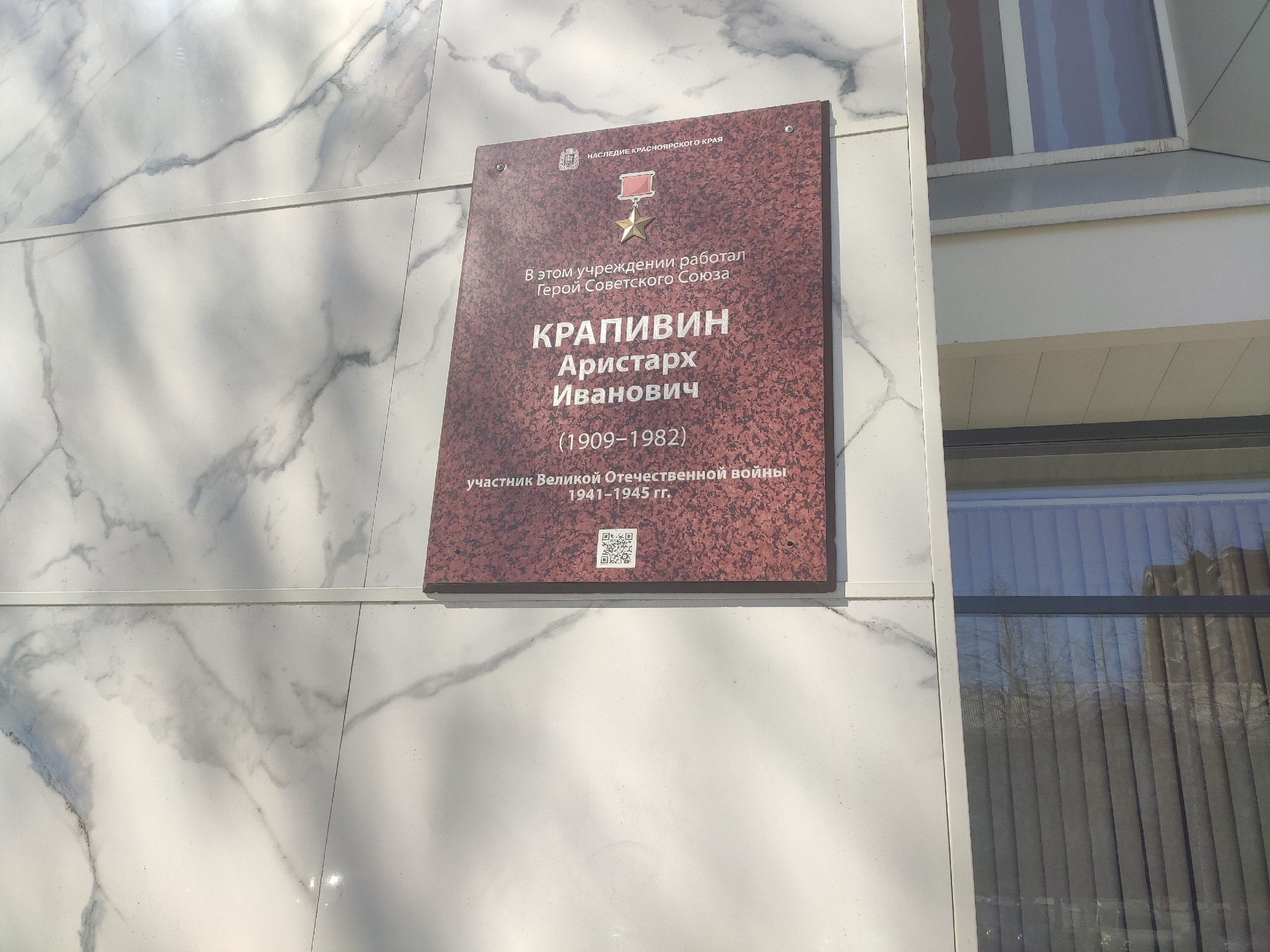 На обновленный фасад здания Красноярского краевого суда вернули мемориальную табличку в честь Героя Советского Союза, бывшего председателя Красноярского краевого суда Аристарха Ивановича Крапивина.